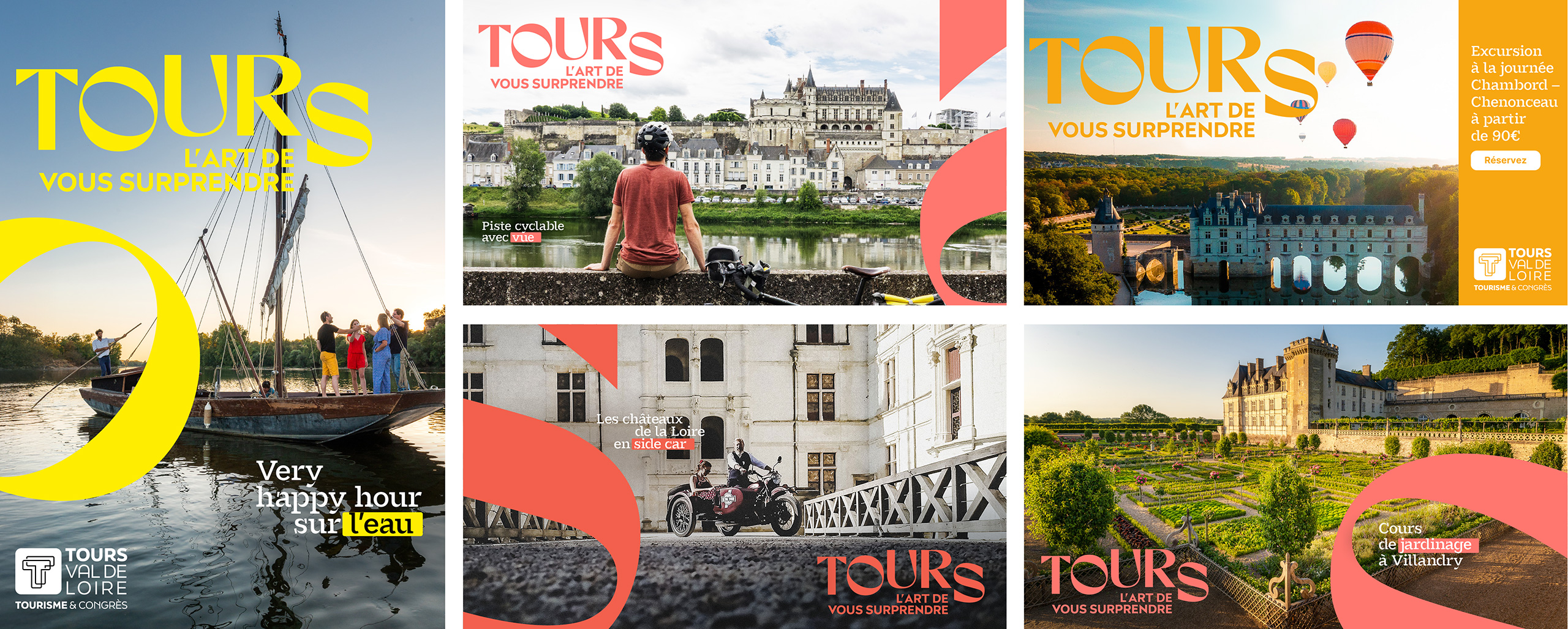 La mission : création de la campagne de communication de Tours Val de Loire, une destination aux multiples surprises. Bouger, s’évader, se cultiver, déguster… différemment. Tours, l’art de vous surprendre.